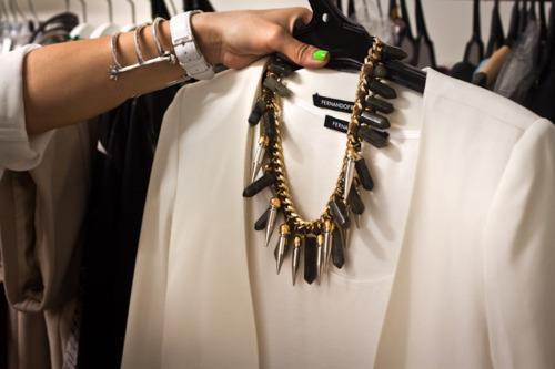 2. Cuello cerrado: Bueno, aquí hay muchas opciones, un collar largo o «plus size», una cadena fina, o un collar con la medida justa del cuello de la prenda. En fin, son muchas las opciones sin embargo la que más me gusta y la que aconsejo es esta última, un collar grueso con la misma medida del cuello, y de cualquier forma. De esta manera pareciera que es una aplicación de la prenda, y se ve genial.