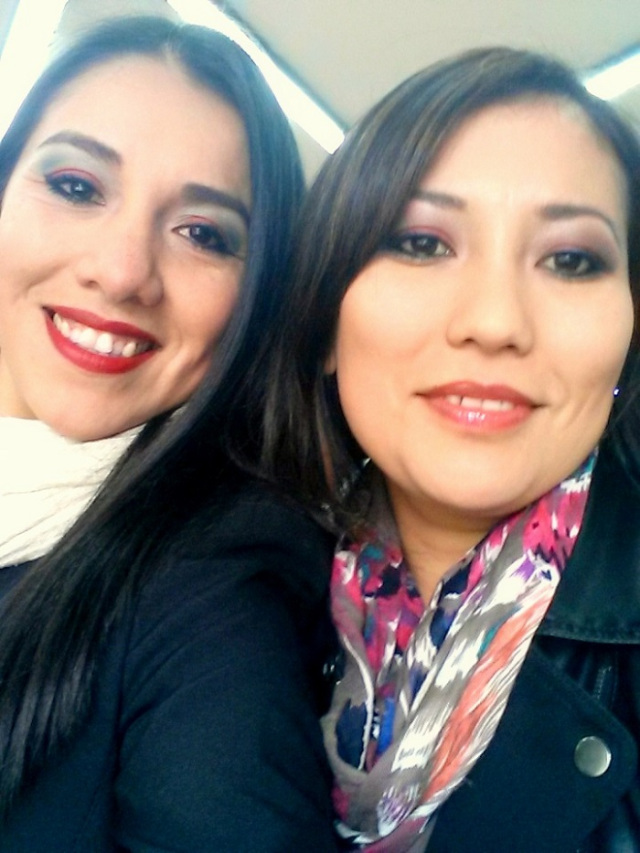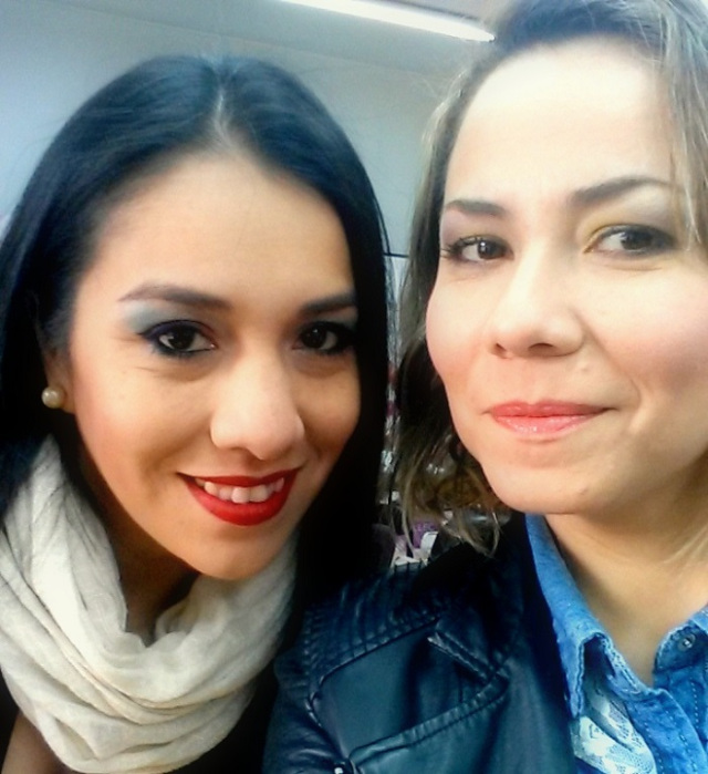 Aquí estoy con Helga del Blog «Soda Time», ella lleva un maquillaje suave y en tonos nude. Abajito estoy con Caro del Blog «My Style Files», ella lleva la misma paleta de color que yo, sólo que difuminado…. Increíble verdad??? Parece otro maquillaje.