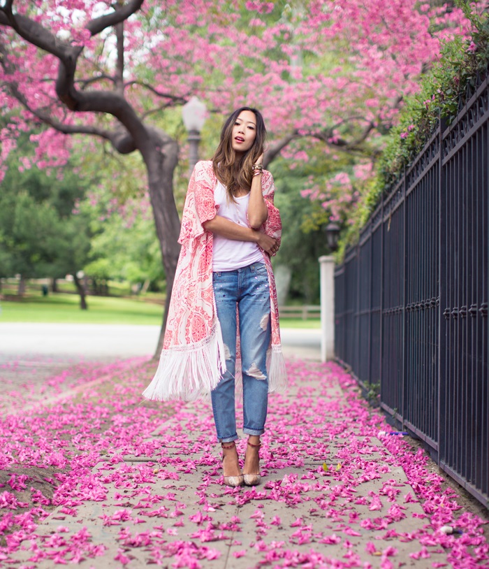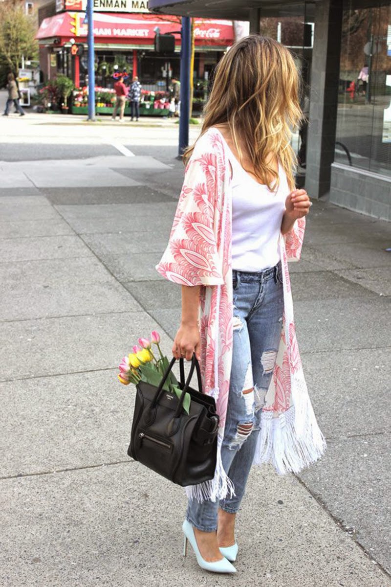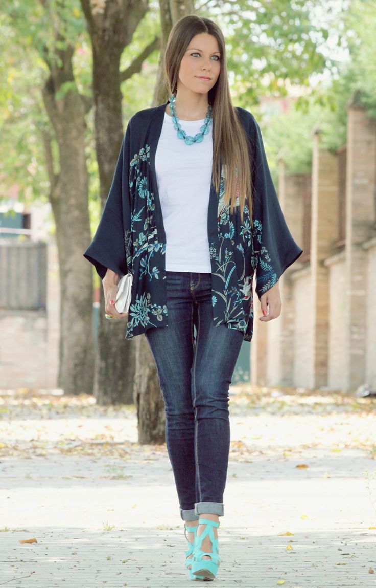 Si quieren obtener más outfits, les recomiendo adquirir 2 kimonos; uno de un color entero (sea blanco, negro u algún otro color básico) y uno estampado (oriental, tribal, tropical, flores o detalles como mariposas, como el de la foto de abajo, que me encantó). Con eso no necesitan más! Las dejo con más ideas. Que les parece chicas? Ya saben, me cuentan!!!