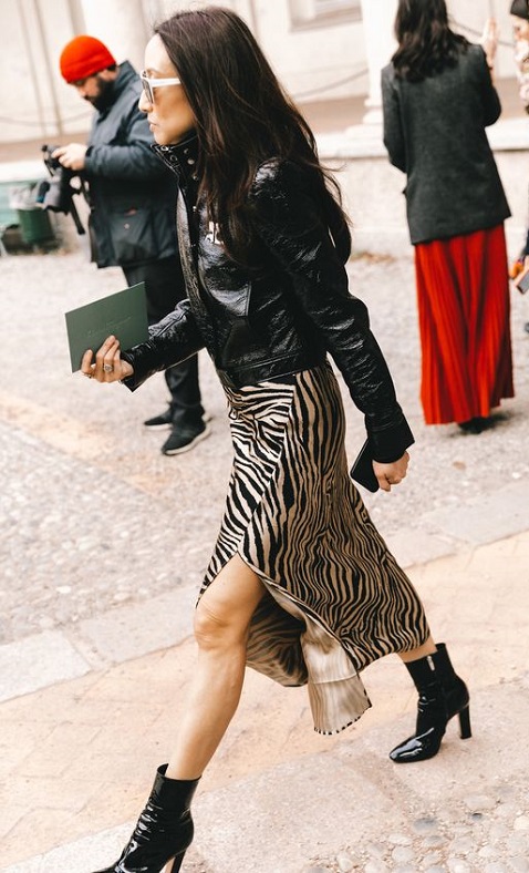 2- CASACAS/CHAQUETAS. Una chaqueta corta de un color que se encuentre dentro de la misma paleta de colores de la falda, o una casaca de cuero son dos ideas hiper geniales y que podemos llevar en el transcurso del día, pues se adaptan a cualquier situación.