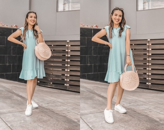 2. CELESTE. Este fue mi look favorito, saben que el celeste es de mis colores, y pues logré un outfit super casual y relajado con unas zapatillas blancas y una carterita de paja. Un opción super de verano. Qué tal?