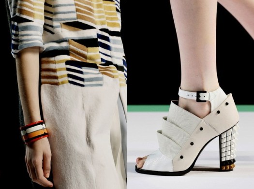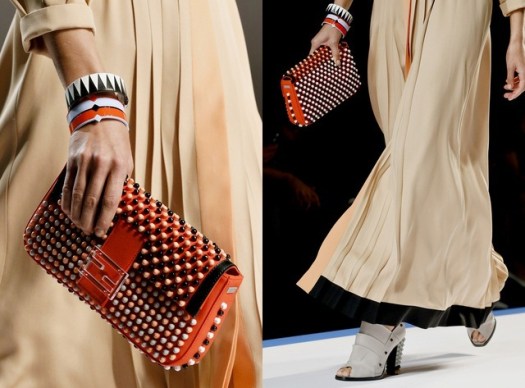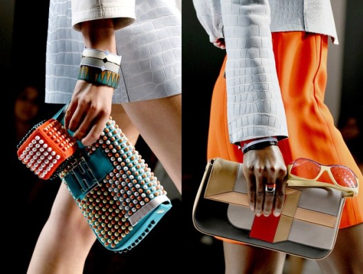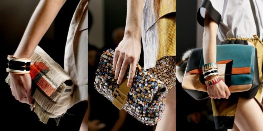 Con una onda tridimensional y detalles geométricos, las carteras y zapatos se robaron el show….. Que puedo decir, adore cada una de sus piezas! Pero lo mejor para mi fue la gran variedad de bolsos y clutchs, hermosos diseños de cuero para el día y la noche en colores como turquesa, naranja, beige, amarillo y negro. Tenía que estar Karl Lagerfeld detrás de toda esta maravilla!…..Veamos algunos diseños.